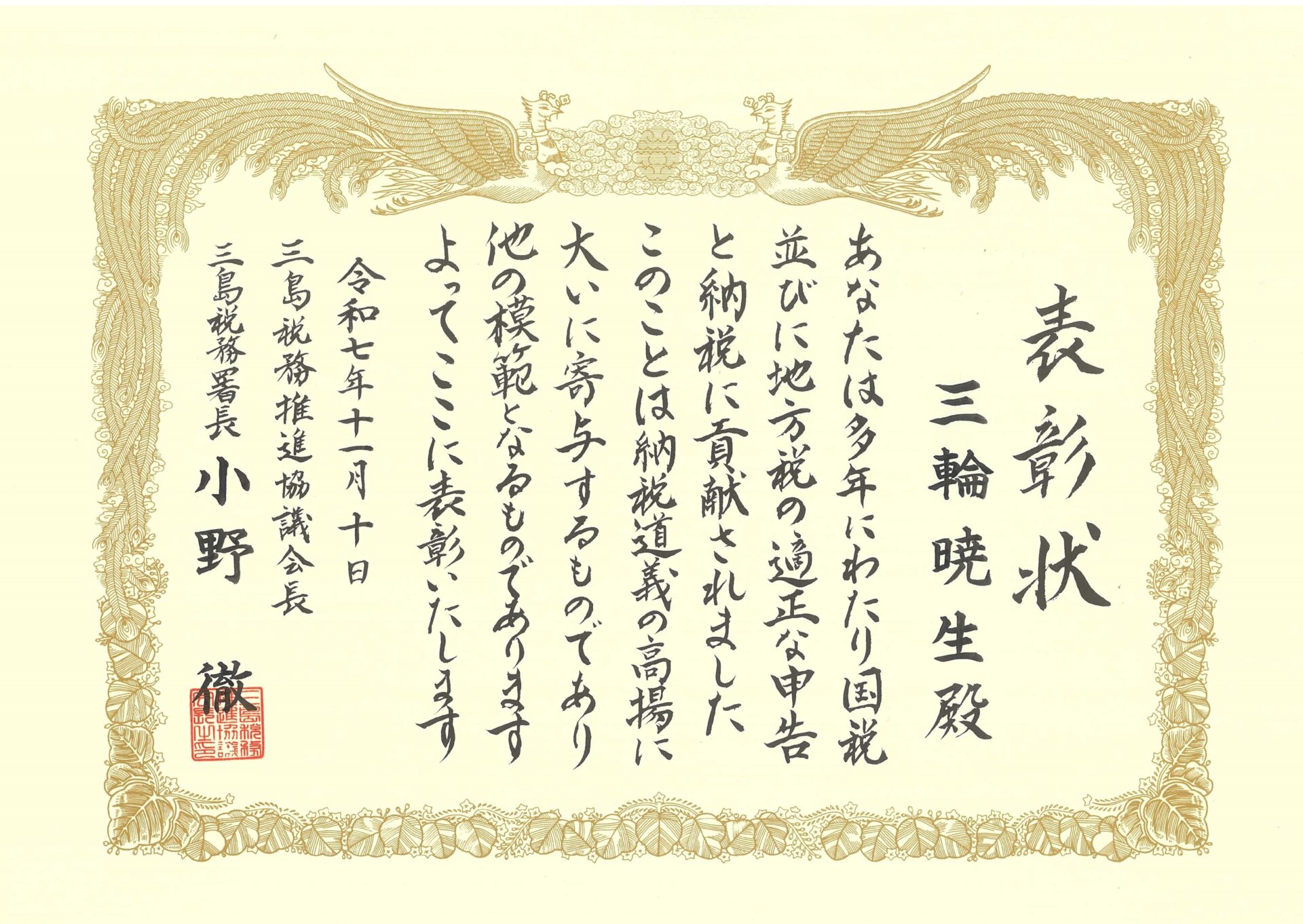 2025年 表彰歴 納税表彰